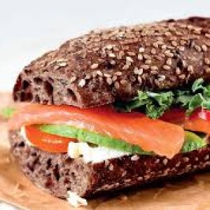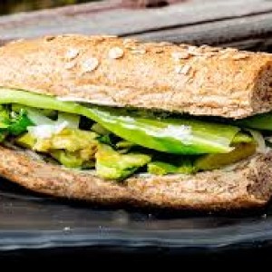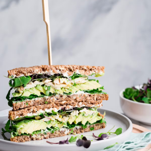 Pain complet, thon, avocat, oignons, sauce citronnée