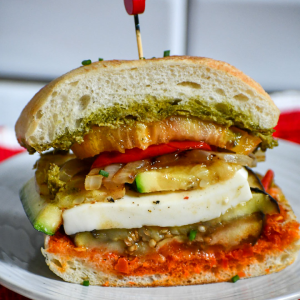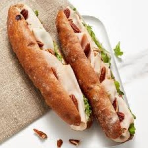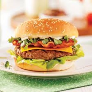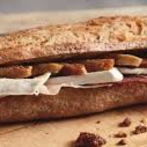Baguette, steak, cheddar, sauce barbecue, oignon rouge