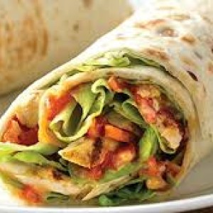 Tortilla, poulet, salade, parmesan, sauce caesar